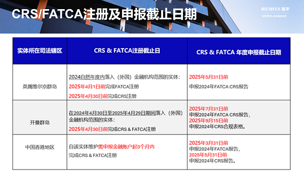 如果您仍然不確定實(shí)體是否落入CRS/FATCA范圍,或者需要我們協(xié)助注冊(cè)/申報(bào)等合規(guī)事宜,請(qǐng)盡快聯(lián)系為您提供專屬服務(wù)的RICHFUL瑞豐客戶經(jīng)理,以尋求支持,我們將竭誠(chéng)為您服務(wù)。