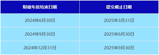 年度申報表 - 財政年度結束后9個月