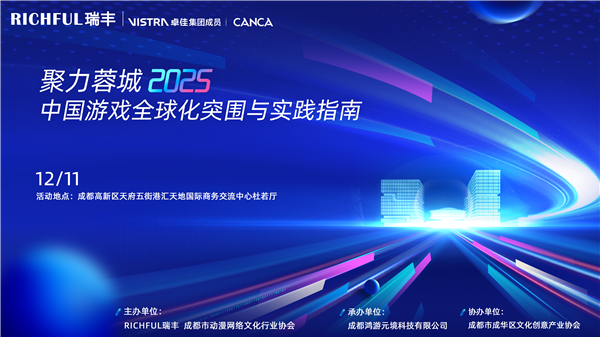 2025 年 12 月 11 日下午,“聚力蓉城 2025—— 中國游戲全球化突圍與實踐指南” 活動在成都高新區(qū)天府五街港匯天地國際商務交流中心杜若廳盛大舉行。本次活動由 RICHFUL 瑞豐與成都動漫網(wǎng)絡文化行業(yè)協(xié)會聯(lián)合主辦,旨在助力游戲企業(yè)在全球化浪潮下,快速且穩(wěn)健地拓展海外市場,有效應對政策、合規(guī)及市場等多方面挑戰(zhàn)。