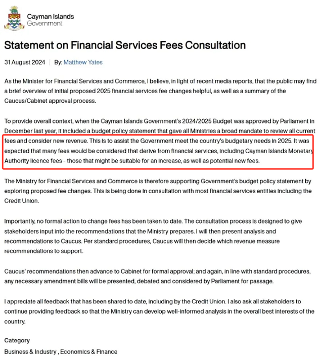 開曼群島政府近日發(fā)布咨詢文件,建議于2025年1月1日起調(diào)高所有開曼群島公司的政府牌照費(fèi)用。關(guān)于費(fèi)用調(diào)整的原因,開曼群島金融服務(wù)部的解釋中提到:“為了幫助政府滿足2025年的預(yù)算需求,將通過探索擬議費(fèi)用變更來支持政府的預(yù)算政策聲明,許多來自金融服務(wù)的費(fèi)用將被考慮,包括開曼群島金融管理局的許可費(fèi),可能適當(dāng)增加的費(fèi)用,以及潛在的新費(fèi)用。因此,將對開曼群島公司年費(fèi)費(fèi)用進(jìn)行調(diào)整,以彌補(bǔ)增加的服務(wù)交付成本?!?/p>