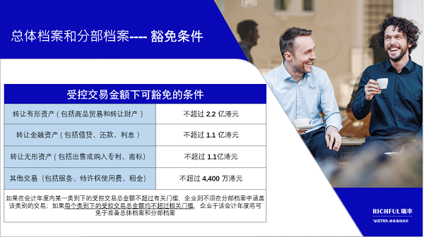 2)交易金額豁免當某類受控交易總額未超過規(guī)定門檻時,可豁免本地文檔準備: