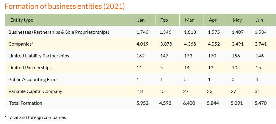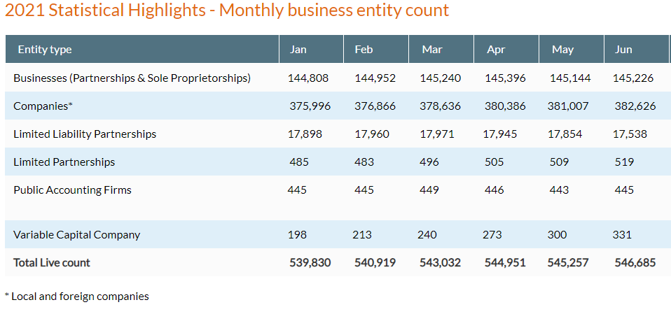 根據(jù)新加坡會計與企業(yè)管理局(ACRA) 于2021年7月1日發(fā)布的統(tǒng)計數(shù)據(jù),新加坡上半年的新設公司總數(shù)為33,349家。得益于全球經(jīng)濟復蘇,新加坡的新設公司同樣有所回暖,但是無論是現(xiàn)有公司數(shù)量、上半年新增公司數(shù)量,還是6月新增公司數(shù)量,其與香港公司的表現(xiàn)都仍有一定差距。