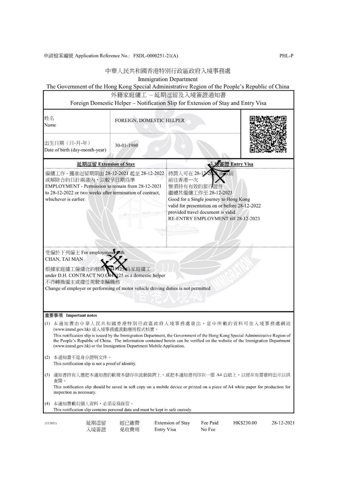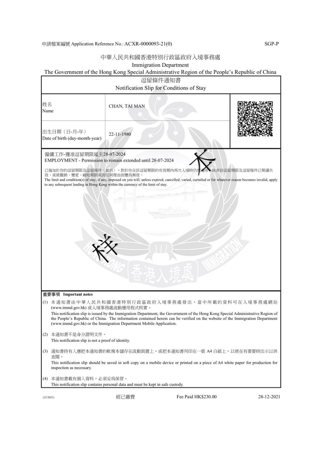 「電子簽證」載有加密二維碼供核實(shí)該證之用。有關(guān)人士(例如「電子簽證」持有人的準(zhǔn)雇主)可使用入境處流動應(yīng)用程式掃描該二維碼檢視相關(guān)資料。使用其他相機(jī)裝置或流動應(yīng)用程式掃描該二維碼將無法檢視相關(guān)資料。此外,有關(guān)人士亦可在香港政府一站通網(wǎng)站或入境處流動應(yīng)用程式(APP)輸入「電子簽證」資料,以核實(shí)該證。